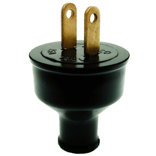 Clavija aérea de caucho negro, compacta y resistente, ideal para uso doméstico. Soporta hasta 15 amperios de corriente monofásica y garantiza una conexión segura, duradera y fácil de instalar para equipos de consumo medio.