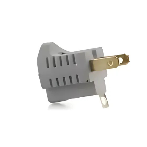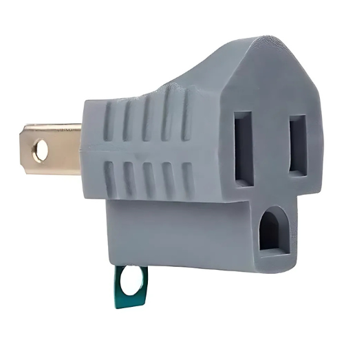 Convertidor Sakura de 3 a 2 polos con conexión a tierra, compacto y resistente. Ofrece una adaptación segura y práctica para enchufes de tres patas en tomas de dos polos, ideal para el hogar, oficina o taller.