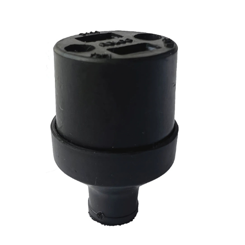 Toma de caucho negro, compacta y resistente, ideal para el hogar. Soporta hasta 10 amperios de corriente monofásica y ofrece una conexión segura, flexible y fácil de instalar para equipos de consumo medio.
